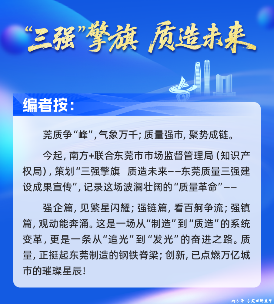 这些政策和数据,宣示着一座制造名城的自我革新。在这里,质量强企如繁星闪耀,质量强链如动脉奔涌,质量强镇如双翼振翅——一场以质量为核心的深刻变革,正诠释着东莞的发展跃迁之路。